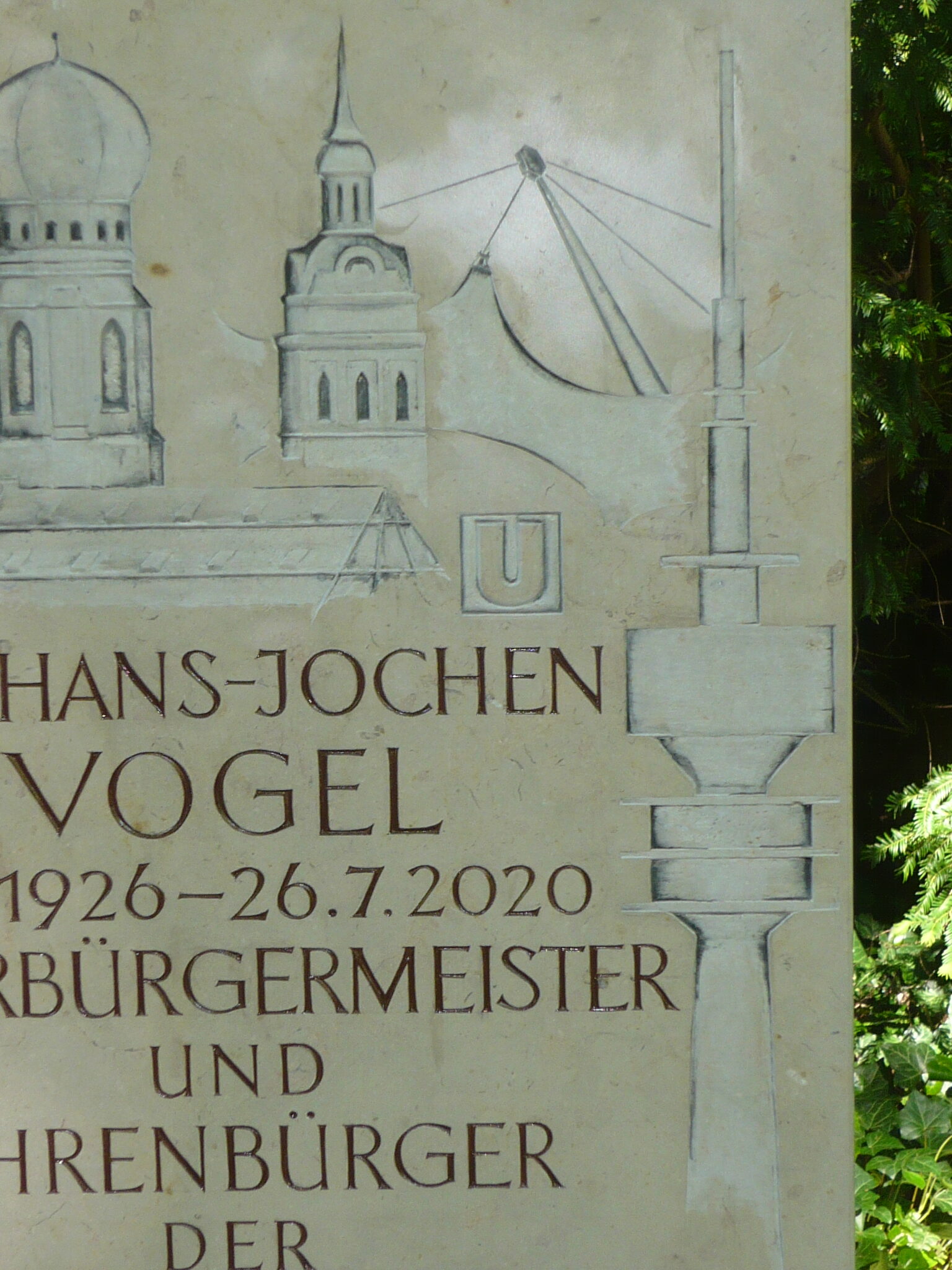 Am Friedhof Bogenhausen steht ein außergewöhnlicher Ehrengrabstein, der das Vermächtnis von Hans Jochen Vogel abbildet. Gefertigt aus hellem Kalkstein, strahlt er schlichte Eleganz und eine tiefe Verbundenheit mit seiner geliebten Stadt München aus. Die filigran eingravierte Stadtsilhouette zeigt unter anderem den Fernsehturm, die Zeltdächer der Olympiageländes und sogar ein U-Bahn-Schild. Der Stein, den er selbst mit Konrad Oppenrieder entworfen hat, ist das gelungene Symbol für die Nähe des Bürgermeisters zu den Menschen und ihrem Alltag. Dieser Grabstein erzählt nicht nur von einem Leben im Dienst der Stadt, sondern auch von einer gemeinsamen Vision, die Vogel mitgestaltete, noch zu Lebzeiten. Ein stiller Ort, der Erinnerung und Inspiration verbindet.